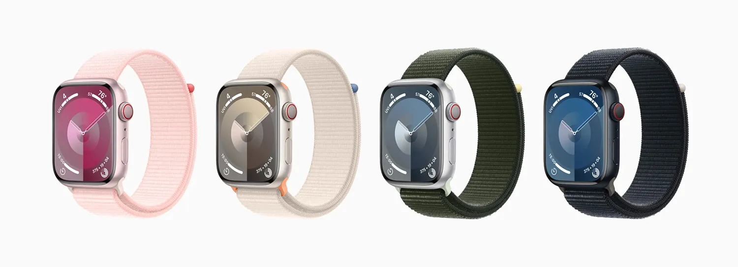 Алюмінієві моделі Apple Watch Series 9 виготовлені з 100% вторинного алюмінію серії 7000, вони легкі та більш призначені для активного способу життя. Годинники з нержавіючої сталі мають більшу вагу та вищу ціну і призначені для щоденного носіння, а не для активних навантажень.
