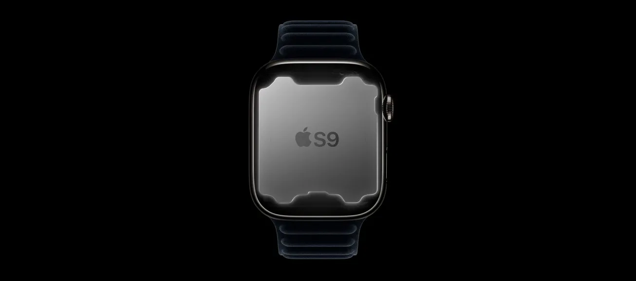 Apple створила нову систему випуску в корпусі (SiP) під назвою S9 System-in-Package для годинника Apple Watch Series 9, і це є найпотужнішим чіпом для годинників. Цей двоядерний процесор має вражаючі 5,6 мільярда транзисторів, що на 60 відсотків більше, ніж чіп S8. Крім того, він включає в себе чотириядерний нейронний механізм, який може виконувати завдання вдвічі швидше.