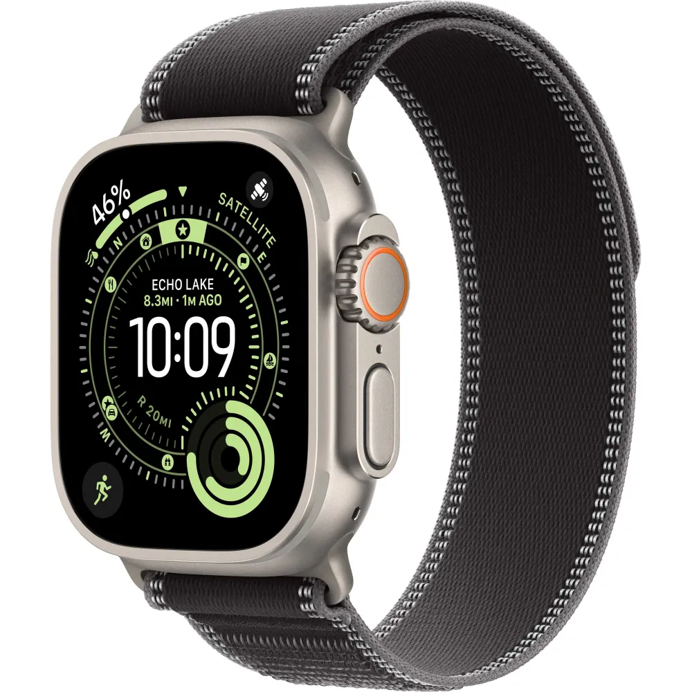 Apple Watch Ultra 3 GPS + Cellular, 49mm Natural Titanium Case with Black/Charcoal Trail Loop - M/L