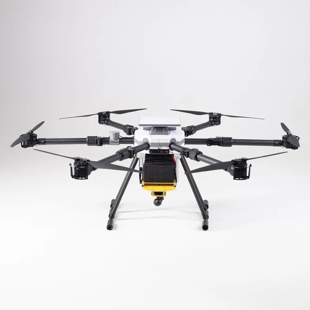 - Вантажопідйомність. Гексакоптер здатний піднімати корисний вантаж вагою до 15 кг. Це дозволяє оснащувати його потужними камерами (денними чи тепловізійними), системами спостереження, лазерними далекомірами чи іншим обладнанням.
