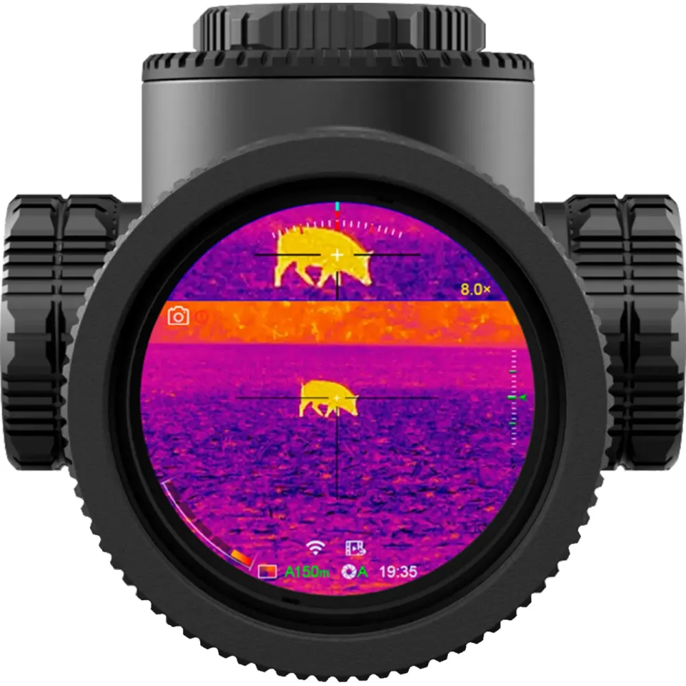 Це повноцінний тепловізійний приціл, монтується на зброю як звичайна оптика - має сітку, калібрується, тримає удар