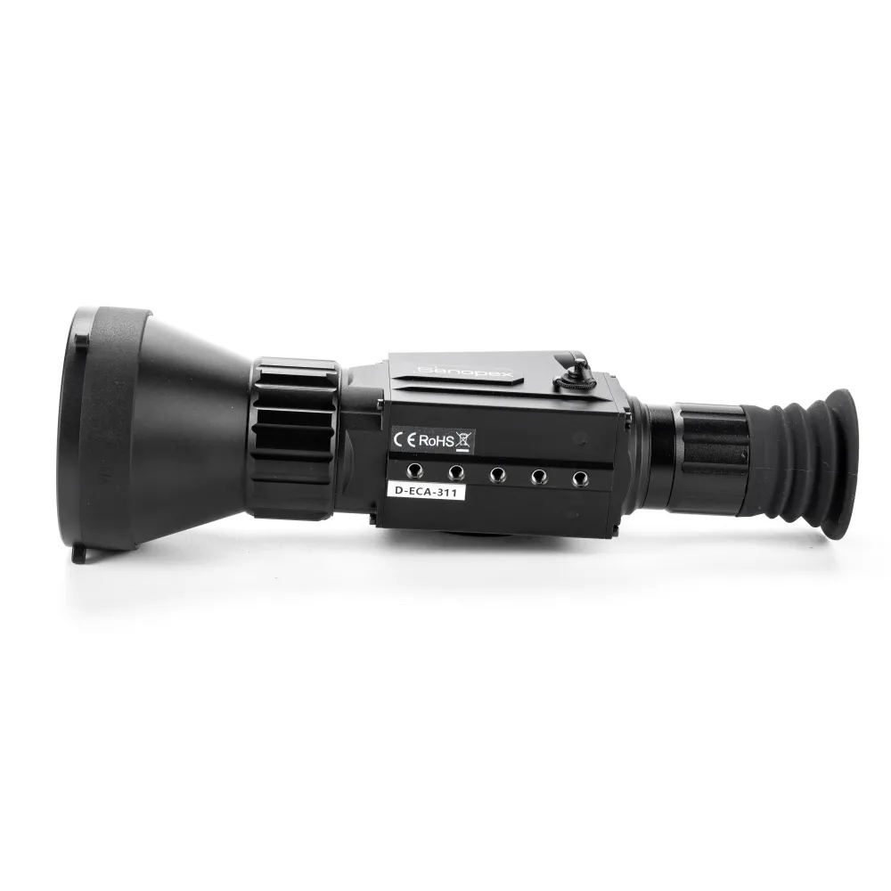 - Зручний для охоронних служб. Широкий функціонал, включаючи лазерний далекомір, допомагає забезпечити контроль над територіями навіть у повній темряві.