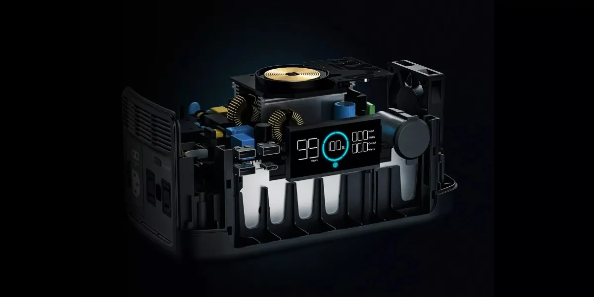 До 7 пристроїв: є два порти AC (220 В), два USB-A, один USB-C (з Power Delivery), один DC5521, і бездротова зарядка на верхній панелі